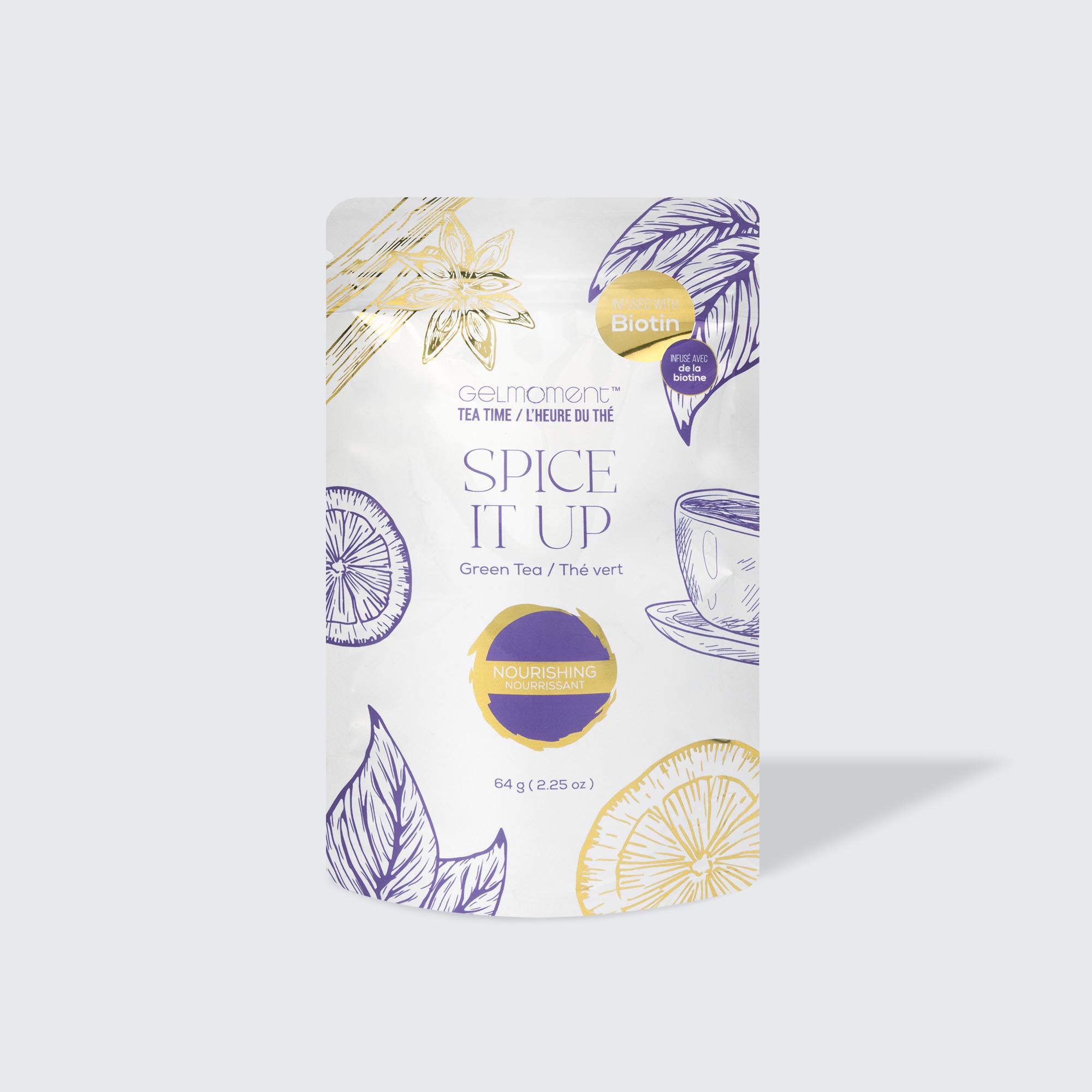 Gelmoment’s tea time collection is comprised of 12 delicious flavours that are blended in the USA with imported ingredients that we proudly source from women-owned farms around the world. They’re also all infused with biotin, providing your nails, hair, and skin with nourishment with every sip.